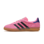 Adidas Gazelle w kolorach Bliss Pink i Fioletowym to czysta nostalgia z odważnym twistem. Ten model to ukłon w stronę lat 70., kiedy Gazelle były królową boisk halowych i miejskich ulic. Wersja Indoor ma charakterystyczną, półprzezroczystą gumową podeszwę i cholewkę z delikatnego zamszu, która prezentuje się jak sztuka użytkowa. Róż i fiolet to odważne, ale zbalansowane połączenie, które nie krzyczy – ono flirtuje z każdym spojrzeniem.