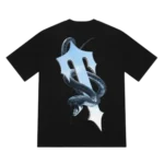 Irongate Snake Slayer Tee Black to jedna z bardziej mrocznych propozycji Trapstar, wpisująca się w estetykę ulicznego survivalu i cyberpunkowego niepokoju. Na plecach widnieje detaliczna grafika przedstawiająca węża przebijanego sztyletem, otoczona logotypami Irongate i hasłami rodem z filmów akcji z lat 90. Wężowy motyw nie jest przypadkowy, ponieważ symbolizuje zdradę, przetrwanie i konfrontację, co od lat jest motywem przewodnim marki Trapstar.