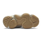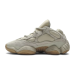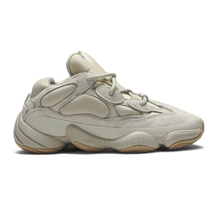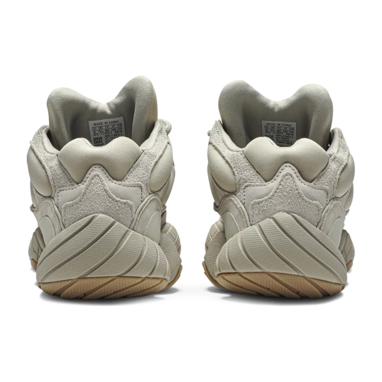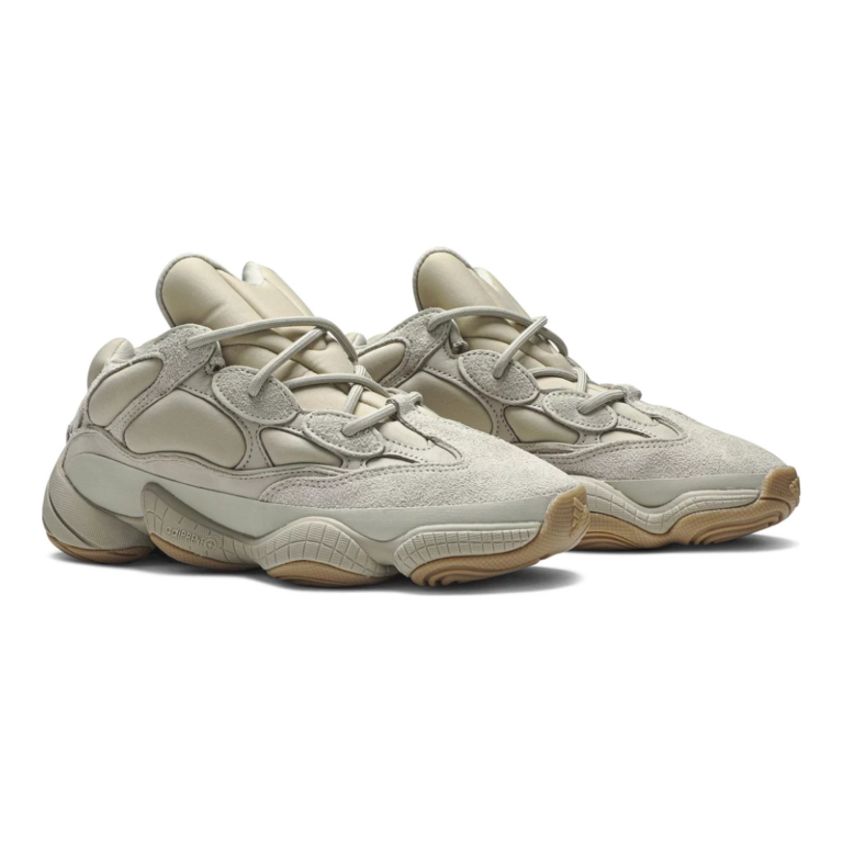 Yeezy 500 Stone to wariacja na temat masywnej sylwetki Yeezy 500, która zadebiutowała pod koniec 2019 roku. Charakterystyczna dla tego modelu cholewka wykonana została z połączenia zamszu, siateczki i neoprenu — co odróżnia ją od wcześniejszych wydań, takich jak Blush czy Utility Black. Dzięki dodaniu warstwy piankowego neoprenu, "Stone" zyskał bardziej opływowy i "napompowany" wygląd, kojarzony z modą techwear i latami 90. Kolorystyka oscyluje wokół ciepłych, ziemistych tonów — zgaszone beże i piaskowy odcień świetnie wpisują się w naturalną paletę barw znaną z kolekcji Yeezy Season.